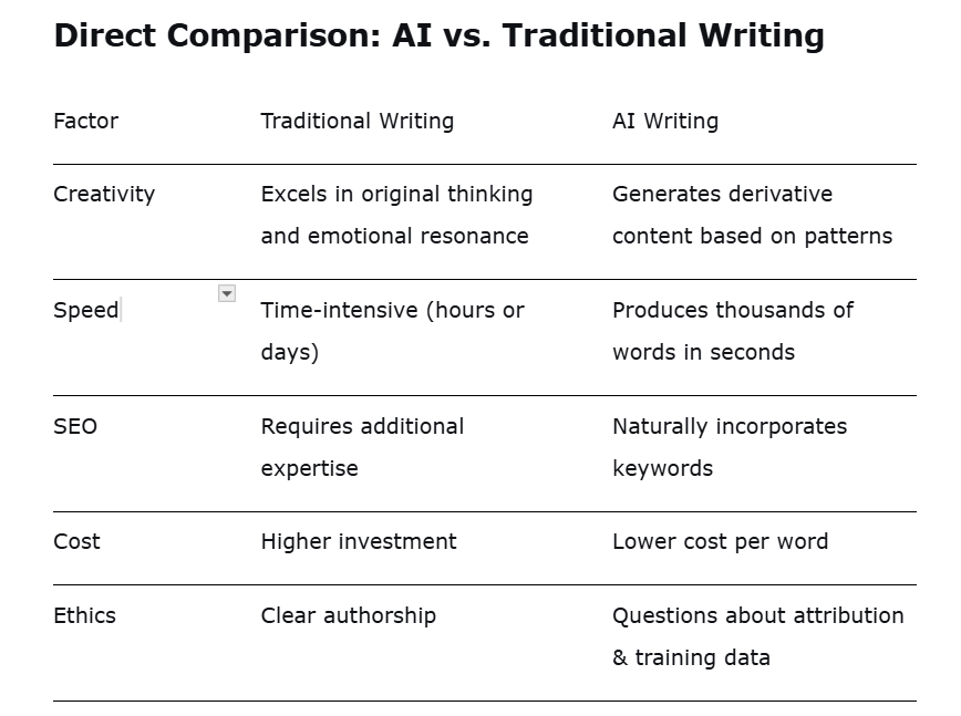 The debate between AI and traditional writing is not about “either/or” but “context.” Both have strengths: